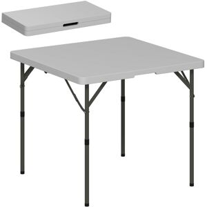 Feature: Foldable design simplifies transport and storage HDPE tabletop is easy to clean and suitable for outdoor use Metal frame with powder coating enhances durability Two adjustable heights cater to various needs Foot pads prevent damage to floors Simple setup without any tools required for convenience Specification: Colour: White Material: HDPE, Metal Overall Dimension: 86L x 86W x 74Hcm Folded Dimension: 86L x 45W x 7.5Hcm 2 Adjustable Height: 74cm (high), 34cm (low) Weight Capacity: 50kg Item Label: A20-451V00WT 1 x Camping Table 1 x Manual