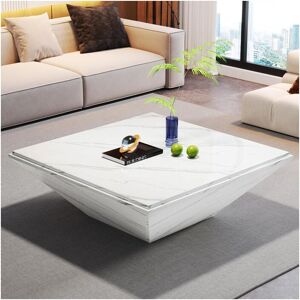 Sophisticated Design - Our 35.43" square coffee table features a stunning faux marble top with a pristine white finish, perfectly complementing contemporary interiors. Bring a touch of luxury and sleek elegance to your living room. Versatile & Spacious - Perfect as a centerpiece for your living room, this table offers ample space for serving drinks, displaying decor, or enjoying board games. Its unique sloping design provides extra comfort for stretching your legs on the sofa. Quality & Stability - Constructed from high-grade engineered wood, this durable coffee table ensures long-lasting use. The smooth, specially varnished surface and non-slip foot pads provide a stable and reliable platform for your essentials. Easy Assembly & Maintenance - Comes with detailed instructions and all necessary accessories for quick and easy assembly. The table is simple to clean — just wipe with a damp cloth to maintain its chic appearance. Outstanding Support - We stand behind our product with an