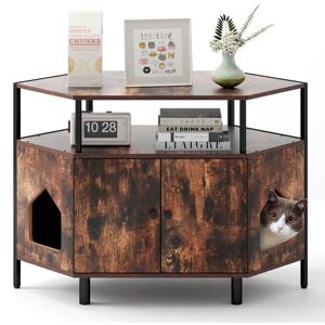 Craft a cozy retreat for your cats with this versatile cat cabinet, designed to snugly fit into any corner of your home, optimizing space while enhancing home aesthetics. This cat litter box enclosure boasts a 2-door system, ensuring easy cleanup. Ample private space is provided for cats and the enclosed frame can hide unpleasant smells. And the dual-entrance design allows for easy access. It’s not just a hideaway, the robust cabinet top surface and shelf offer ample storage for your cat’s essentials, doubling as a chic spot for your decoration. Engineered for stability, the sturdy cat washroom cabinet supports a weight of up to 90 kg and sits securely on adjustable pads, ready to withstand the quirks of uneven flooring. More superior details await your discovery. Features: Save more space by placing the cat house in any corner Made of selected boards that are anti-crack and burr-free Robust metal frame is anti-deformation and stable Wide cabinet top and open shelf as added storage