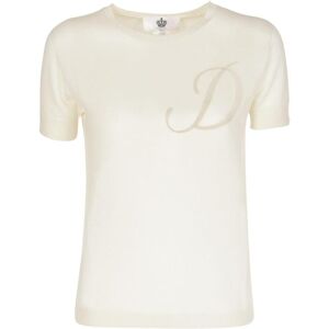 Lightweight crew neck sweater Made of 55% silk and 45% cashmere Perfect for off-duty dressing traveling and workday wardrobe Ribbed finish on cuffs and hemline Contrasting letter on front True to size straight fit falls to hip Made in Italy Dry clean/hand wash cool55% SETA 45% CASHMERE