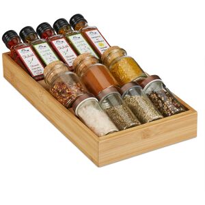 Store herbs, salt, pepper and many more ingredients that make your meals delicious easily with this spice rack. Made of 100 % easy-care bamboo. This 3-tier spice stairs can be extended to the side for more space. However, this moisture-resistant kitchen storage helper can also be used as a cosmetics organiser to keep your toiletries inn order. Bamboo Spice Rack Details • Extended size: HxWxD: app. 8.2 x 38.6 x 21 cm • Standard size H x W x D: app. 8.2 x 22.7 x 21 cm • Material: Bamboo • Weight: app. 0.8 kg Kitchen Stand for Spices and More • Ensures order and keeps your kitchen tidy • Store shakers, small jars or cans • Extendible herb rack • Oblong shelves on 3 levels • Naturally lovely bamboo Included in Delivery • 1 x Spice Rack • Decorative items shown in product photos are not included