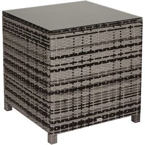 The perfect small spot for keeping items next to you outdoors, with this Outsunny square side table. The powder coated and galvanised steel frame makes a strong core - wrapped in stylish plastic wicker for a protective outer layer. Fitted with a 5 mm tempered glass tabletop for a sleek look and a safe flat holding spot. Specifications: ● Colour: Black ● Material: Galvanised Metal, PE Rattan ● Table Size: 64L x 64W x 68Hcm ● Table Weight Capacity: 70 kg ● Net Weight: 12 kg ● Flat Pack: Yes ● Custom Label: 01-0724 Features: ● Mixed-brown design is subtle and stylish. Looks good paired with other outdoor furniture ● Powder coated steel frame for a strong core ● Plastic wicker outer ensures rattan protects metal against mild weather. Also wipes clean easily ● 5 mm tempered glass tabletop is sleek and safe ● Four legs with foot pads, protects the floor
