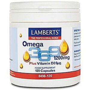 LAMBERTS Omega 3, 6, 9 formula has exceptional levels of omega 3, 6 and 9 and also includes a full 5mcg of vitamin D; a vitamin well known to support the normal function of the immune system. Why LAMBERTS Omega 3, 6 and 9 plus vitamin? Omega-3 and omega-6 fatty acids are essential in the diet, and whilst the omega-9 fatty acids are not classed as essential, a supplement containing the correct balance of all three can be useful. This unique formulation therefore emphasises the omega 3s obtained from oily fish (rather than the less well absorbed alpha linoleic acid source used by many companies), with each capsule providing a full 379mg of these essential fatty acids. The level of EPA at 196mg and DHA at 127mg is significantly higher than many other 3, 6 and 9 products that are available. DHA and EPA support the normal function of the heart and in addition, DHA contributes to the maintenance of normal vision. Pure grade starflower (borage) oil provides the source for the omega 6 fatty acids, with each capsule providing 66mg of the all-important Gamma Linolenic Acid (GLA), together with 125mg of linoleic acid. LAMBERTS choose natural olive oil as their source of the omega 9 fatty acid, oleic acid, with each capsule supplying an impressive 200mg. About Lamberts LAMBERTS is the UK's leading supplier of food supplements to Practitioners, GP's, Nutritionists and Pharmacists who use nutrition in healthcare. Their healthcare philosophy consists of sound science - they only develop health products supported by a valid scientific rationale, and always at the right potency for maximum benefit. LAMBERTS Omega 3, 6, 9 has exceptional levels of omega 3, 6 and 9 and also includes a full 5mcg of vitamin D; a vitamin well known to support the normal function of the immune system.
