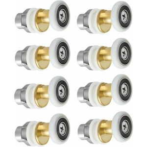 Set of 8 shower door rollers: consisting of 4 upper rollers and 4 lower rollers, a total of 8; Delivery with screws and plastic cover. Suitable for glass shower door, shower cabin door, massage cabin door or sliding furniture fittings. Roller material of the shower enclosure: Made of brass and ABS plastic, sturdy and durable. Size: The wheel size is approx. 23mm in diameter, 6mm in width; the maximum glass thickness is 6 mm; The distance between the center of the mounting hole and the edge of the glass is approx. 18 millimeters. Easy to slide: the bathroom slider is easy to move and install, keeps the door in balance and allows the door to slide with minimal effort. Product Description 4 upper shower door rollers and 4 lower shower door rollers, with plastic cover. A practical fitting for the shower door glass slider. Material: Brass rod and ABS plastic, sturdy and durable. Castor size: The wheel diameter is about 23mm, the thickness is about 6mm; Suitable for glass thicknesses of