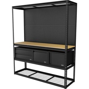 Features & Benefits: • Textured powder coat steel construction to prevent rusting. • Rubberwood workbench with racking storage and pegboard. • Drawer and Cupboard units built specifically to fit racking for a professional and tidy appearance. • Tool-less assembly of upright and shelves with just basic assembly required to attach pegboards. • Industrial structured beams offers added strength with 300kg capacity per level, giving a maximum capacity of 12000kg per rack. • Overall Size (W x D x H): 1820 x 540 x 2090mm. Package includes: • APMWB1 - Heavy-Duty Modular Workbench with Racking and Pegboard • APMB1 - Modular Storage Cupboard - 1 Door • APMB2 - Modular Single Drawer Unit • APMB5 - Modular Wide Double Drawer Unit • You may also refer to the individual Model No. for full specification. • Model No. APMWBCOMBO1 Specifications: Model No APMWBCOMBO1 Brand: Sealey Nett Weight: 111.3kg