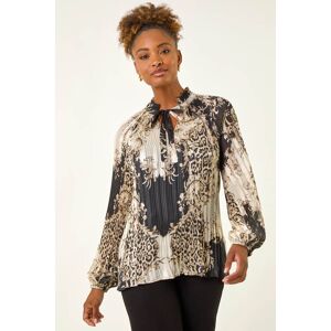 Roman Women's Animal Print Pleated Top in Brown Size: 20 - Brown - Size: 20