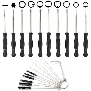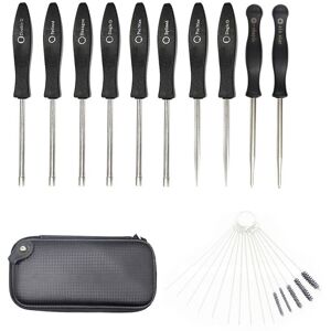 Carburetor adjustment tool Overall length: 6-1/8 inch.(metal pole: 3 inch. plastic handle: 3-1/8 inch) Cleaning kit include: 6pcs cleaning needle + 6pcs cleaning brush + 1pc hex wrench Marked with tool type on the handle, easy to recognize Built with squared handles, which makes it easy to tell 1/4 turn increments on the mixture settings. 1/4 turn is typically the increments you want when trying to tune a carburetor Fits many of equipment, including , , , Weedeater, , , and anything else that utilizes the adjustment screws Used on most but not all engines.carburetor may need a 22-teeth splined tool Indispensable for who is maintaining personal equipment plus stuff for friends, family Keep engine within EPA specification colour:black Material:metal Package Contents: 10 * carburetor adjusting tool 1 * set carburetor cleaning kit Only the above package content, other products are not included. Note: Light and different displays may cause the color of the item in the picture a little