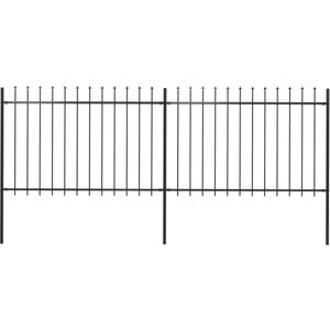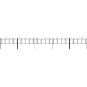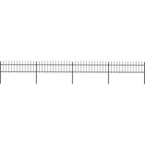 Create an elegant fence around your garden, home, or walkway with our garden fence! Our decorative steel garden fence, consisting of 3 fence panel and 4 posts, has a total length of 5.1 metres. It will form a sturdy, safe and maintenance-free perimeter barrier for your garden, home, or business property. With vertical bars topped with spear ends and strong horizontal brace as reinforcement to the frame, our garden fence will provide a high degree of security. Manufactured from heavy-duty, powder-coated steel, the outdoor fence is exceedingly stable, sturdy and durable. Thanks to the included mounting materials, the garden fence is easy to assemble. Note: You can buy more sets to make the fence as long as you like. Colour: Black Material: Powder-coated steel Total size: 510 x 130 cm (L x H) Fence panel height: 80 cm Post dimensions: 3.4 x 130 cm (Diameter x H) With spear top Mounting materials included Delivery includes 3 x fence panel and 4 x post You can buy more to make the fence as