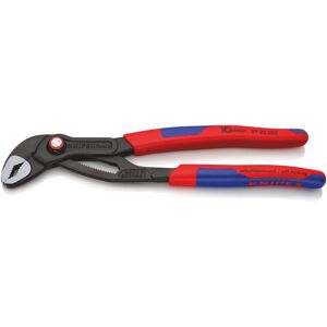 Cobra® Quickset Water Pump Pliers PVC Grips 250mm - 50mm Capacity - Knipex 87 22 250 SB, Knipex 87 Series Cobra® Quickset Hightech Water Pump Pliers are made from high-grade vanadium special tool steel, that has been forged and then oil-hardened, for a longer, robust working life. They combine the proven, reliable locking of the hinge bolt with an additional push function which makes it easier to work in very confined and inaccessible areas. The adjustment directly on the workpiece is possible by simply sliding the pliers handle. They offer reliable locking of the hinge bolt with the first workload. The gripping width of the pliers is then fixed and can only be adjusted by pressing the button. To re-activate the sliding function, the hinge bolt must be released by pressing the push button and the pliers must be completely opened again. Available with PVC or Multi-Component grips. Specification Pipe Capacities R = Round H = Hex & Adustments;87 21 250: R: 50mm, H: 46mm, 25 Adjustments87 21 300: R: 70mm, H: 60mm, 25 Adjustments87 22 250: R: 50mm, H: 46mm, 25 AdjustmentsKnipex 87 22 250 Cobra® Quickset Water Pump Pliers Multi Component Grips Knipex 87 22 250 SB Cobra® Quickset Water Pump Pliers Multi-Comp 250mm 50mm Cap