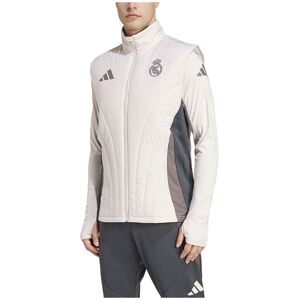 Be ready for the cold when you walk onto the pitch.Part of Real Madrids adidas training range, this vest offers targeted insulation so you stay focused on perfecting your game.Zip pockets keep your essentials secure and a heat-applied club badge provides all the inspiration you need to improve your football.This product is made with 100% recycled materials.By reusing materials that have already been created, we help to reduce waste and our reliance on finite resources and reduce the footprint of the products we make.Sustainability and Ethics:MADE IN PART W RECYCLED MATERIALS.FEATURES:-Slim fit.-Full zip with stand-up collar.-100% polyester (recycled).-Front zip pockets.-Insulated chest.-Real Madrid heat-applied crest.-Real Madrid heat-applied crest.-Mesh inserts.
