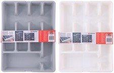 General description A cutlery tray is the perfect kitchen accessory for organizing and sorting knives, forks, spoons, and other kitchen utensils. The sturdy bamboo cutlery tray features 6 separate compartments that provide ample space for a variety of cutlery. With its compact size, the cutlery organizer is ideal for small to medium-sized kitchen drawers. The cutlery tray is robust and stable, yet looks elegant due to its attractive grain. Technical specifications Overall dimensions H x W x D: approx. 5 x 35.5 x 25.5 cm Dimensions of small longitudinal compartments H x W x D: approx. 4 x 5.5 x 22 cm Dimensions of large longitudinal compartment H x W x D: approx. 4 x 5.5 x 28 cm Dimensions of small crosswise compartment H x W x D: approx. 4 x 18 x 5.5 cm Dimensions of large crosswise compartment H x W x D: approx. 4 x 24 x 5.5 cm Weight: approx. 0.7 kg Material: bamboo, MDF Compatibility and accessories Suitable for cutlery and other kitchen utensils Also suitable for sewing and craft