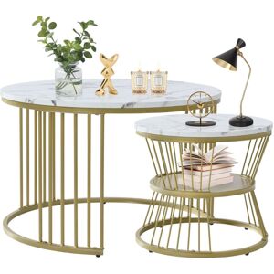 Product Features 1.The tabletop is marble-pattern.Not marble! Not slate! 2.Please wipe with wet cloth or alcohol. 3.Do not set an open flame (such as a candle) on the product! 4.As it is a brand-new product, it will smell the raw materials in a short time. If you don't mind, please leave it in a ventilated place for about a week, and the smell will disappear.Description 5 points ①SET of 2 DESIGN: The coffee table set includes a large coffee table (70*70*45cm) and a small coffee table (45*45*40cm). A small coffee table can be placed under the bigger coffee table. You can combine them as you like.PRACTICAL FURNITURE: This living room side table is ideal for small spaces. It can be used for holding books, magazines, laptops or e-readers. You can also use it as a small coffee table.VERSATILE: Each of the tables has multiple uses. You can place them next to the sofa in the living room or use them as bedside tables in the bedroom.Durable & Stable Structure:The MDF tabletop ensures great