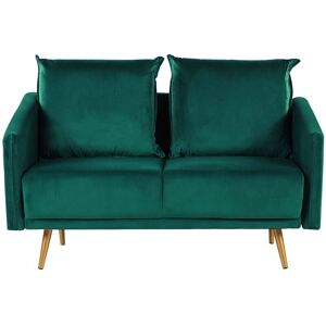 Green Loveseat with Golden Legs. Incredible comfort, soft to touch upholstery and stylish finish - these features combine for this emerald green sofa. Cushy padding and back pillows are filled with pocket springs, which allow for hours-long and undisturbed rest. The velvet surface and metal golden legs match glamour style living rooms, but do not hesitate to mix the loveseat with boho or retro designs. Details: Product Type: 2 Seater Sofa Style: Glam General Color: Green, Gold Shade: Emerald Green Material Type: Fabric Main Material: Velvet Additional Material: Metal Filling Material: Foam Material Composition: 100% Polyester Arm Style: Track Pattern: Solid Seat Construction: Sinuous Springs Seat Foam Density: 24 kg/m3 Seats Up To: 2 People Dimensions: Armrests Height: 60 cm Depth: 78 cm Seat Thickness: 24 cm Seat Height: 47 cm Width: 130 cm Height: 83 cm Seating Surface: 113x50 cm Weight: 33 kg Weight Capacity per Person: 125 kg Offer Includes: 1 x Loveseat Key Features: Thickly