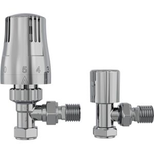 Specification -Angled valve - 90 degrees -Colour: Chrome -Compact design -Industry standard 15mm connection -1/2" BSP MI outlet -Pack includes: One of angled thermostatic radiator valve; One of angled lockshield radiator valve Note: We suggest you ask a qualified plumber to install this item Images for illustration purposes - colours may differ depending on your device screen and lighting The P&P is only for those addresses in Mainland England.A surcharge will apply to the remote areas .