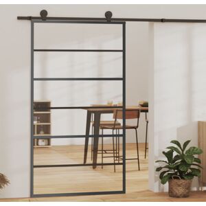 Create a graceful transition from one space to another with this sliding door. Made of transparent ESG glass, it allows plenty of light to enter the room. The glass door has an aluminium frame, giving it a clean look. Additionally, thanks to the door soft stop for stopping a door when it is opened or closed by triggering a buffer, it can be opened and closed quietly. The door can only be mounted in combination with sliding door hardware kits. You can find the matching sliding door hardware kits in our shop (SKU: 145262-145263). For the installation way, you can check our installation manual of the door and sliding hardware kits. Colour: Transparent and black Glass thickness: 5 mm Door thickness: 2 cm Mounting accessories are included Hanging wheels and top sliding rails are excluded Assembly required: Yes Ebern Designs Door Size: 205cm H x 90cm W x 5cm D
