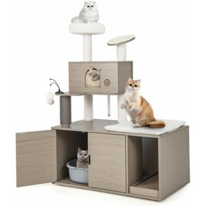The ultimate space-saving solution for you and your feline companion! The versatile cat tree provides a private washroom for cats, which will help reduce litter tracking. Meanwhile, the multifunctional cat activity center includes a soft plush perch, a vented condo, 3 dangling balls and 3 platforms, offering ample space for cats to explore and sleep. Besides, the cat tree is designed to release your cats' natural instincts. It comes with a removable scratching board to sharpen the claws of your furry friends and protect the furniture. Additionally, it features a self-groomer, allowing your cats to groom their hair. Cats’ safety comes first! The cat tree will not tip over with an anti-tipping device. And the large hidden cat washroom further guarantees stability, while the adjustable foot pads ensure balance on uneven grounds. The 2 removable plush cushions are washable for easy cleaning, ensuring a clean and comfortable environment for your cats. Features: 2-in-1 design is