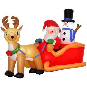 Create the ultimate festive Christmas display in your yard this holiday season with HOMCOM' Christmas decoration. Designed with ultra-durable, weather-resistant polyester cloth and featuring internal LED light, it will invoke the holiday spirit for years to come. Automatically inflating after power-on creates a super simple set-up process that anyone can do. Build the perfect holiday yard display this year to outdo the neighbours and bring holiday cheer in classic Christmas fashion. Specifications: - Colour: Red, Yellow - Type: Inflatable Christmas Santa Claus on Sleigh - Material: Polyester Cloth - Overall Dimension: 200L x 80W x 128Hcm - Power Cable Length: 2m - LED Light Power: 0.48W - Fan: DC 12V/1.0A - Input voltage: 220-240V/50HZ - Output voltage: DC 12V/1.25A - Certification: IP44, UKCA, CE-EMC, RoHS - Item Label: 844-370V70 NOTE 1: Ensure air blower is always connected to keep decoration inflated 2: Please don't place it outdoor in hard rain or snow! Features: ● The