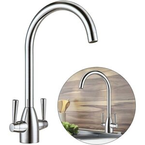 With its stylish Brushed Nickel finish and gorgeous curved arched spout this tap is sure to make any kitchen stand out from the crowd. The tap has a smooth contemporary design and comes with two perfectly contoured handles that taper down towards the main piece of the body. Inside this beautiful frame you'll find quarter turn ceramic disc technology for the smoothest of operation and added reliability. No one likes a tap that drips and ceramic cartridges won't let this happen. Guaranteed by us for 10 years covering manufacturing faults. Features Dual control lever mono-bloc kitchen sink mixer tap 1/4 turn ceramic cartridge Swivel spout makes it perfect for big twin double bowl sinks 360 degrees swivel full turn operation spout Single-hole, deck mounted installation Solid brass body with high quality brushed finish Exceptional build quality and finish. Technical Information Suitable for the following water systems: Combi-boilers High pressure systems Package Contents 10 year guarantee