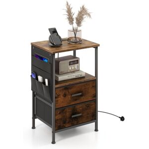 Do you lack storage space aside the sofa or bed? This end table with storage drawers can help! Equipped with a tabletop, an open shelf and 2 pull-out drawers, the nightstand is great for display and storage, keeping lamps, snacks, plants and cups close at hand. You can easily grab a cup of coffee when you sit down on the sofa for relaxing. Whats more, the high-quality MDF and engineered wood ensure a long service life, while the robust metal frame supports a large weight. With easy-to-follow instruction, you can put it together without any problem. Costway Industrial Nightstand Bedside End Table with 2 Fabric Drawers Storage Shelf
