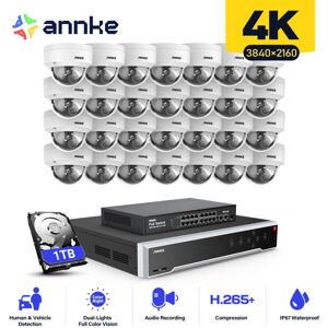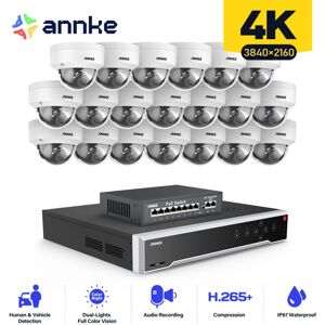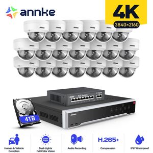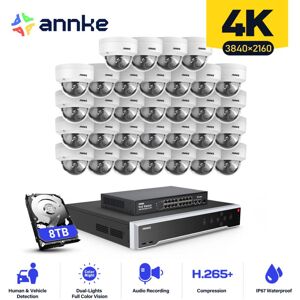 Caractéristiques principales NVR : ★ Résolution d'enregistrement de 12 MP ★ 32 entrées de caméra IP (bande passante entrante totale de 256 Mbps) ★ H.265+/H.265/H.264+/H.264/MPEG4 ★ Sortie vidéo HDMI 4K (3840 × 2160) ★ Sorties HDMI et VGA indépendantes ★ 4 interfaces de disque dur SATA ★ Recherche intelligente et lecture intelligente ★ E/S d'alarme et audio ★ Transmission réseau longue distance (100 à 300 m) via PoE Caméra : ★ Caméra réseau intelligente à double éclairage 4K ★ L'objectif 4 mm à F1,6 redonne vie à tout ★ Technologie de compression H.265+ efficace ★ Détection de mouvement 2.0 avec détection humaine et véhicule ★ Vision claire de jour comme de nuit avec DNR 3D et WDR 120 DB ★ Microphone intégré pour une sécurité audio en temps réel ★ Prise en charge du stockage embarqué jusqu'à 512 Go (emplacement pour carte SD) ★ Indice de protection IP67 contre la poussière et l'eau ★ Prise en charge PoE et DC12V 【Capturez des détails clairs la nuit grâce à la double lumière