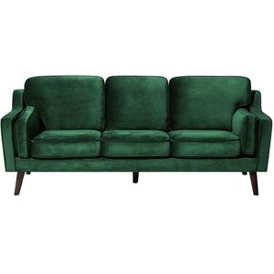 Upholstered Sofa in Green. Elegant sofa, fully upholstered in high-quality velvet, pleasant to the touch fabric with a beautiful sheen. Thickly padded cushions and double armrests guarantee pleasant sitting. The mid-century design highlighted by slanted oak wood legs matches all modern and traditional interiors. It works well combined with matching sofa from the same collection, but can also work as a part of eclectic arrangement with various armchairs and couches. Details: Product Type: 3 Seater Sofa Style: Glam General Color: Green, Brown Shade: Emerald Green Material Type: Fabric Main Material: Velvet Additional Material: Oak Wood Filling Material: Foam Material Composition: 100% Polyester Arm Style: Track Pattern: Solid Seat Construction: Sinuous Springs Seat Foam Density: 40 kg/m3 Seats Up To: 3 People Dimensions: Armrests Height: 58 cm Depth: 83 cm Seat Thickness: 11 cm Seat Height: 39 cm Width: 204 cm Height: 85 cm Seating Surface: 156x58 cm Weight: 45 kg Weight Capacity per