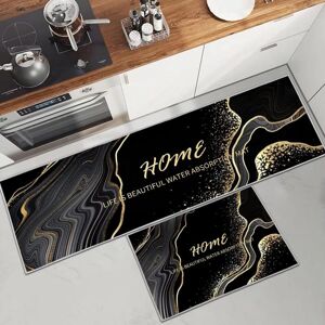 【Comfort and Super Water Absorbent Mat】Made of high quality polyester, non-fading and wear-resistant, comfort your feet when cooking; absorb water and dry quickly, protect your kitchen from moisture and stains. 【Practical Set】: The surface of our kitchen mat is made of short velvet, non-slip latex backing. The package contains 2 kitchen mats Dimensions: 40 x 120 cm + 40 x 60 cm, which is perfect for home use. 【Comfortable Non-Slip Kitchen Mats】The bottom of our runner rug is made of non-slip latex and has a non-slip pattern. 【Easy to Clean】This kitchen mat absorbs water and dries quickly, protecting your kitchen from moisture and stains. Hand wash recommended. Use mild detergent. Do not bleach or dry clean. Do not use fabric softeners or dryer sheets. 【VERSATILITY】Uniquely designed surface pattern with ultra-fine surface treatment adds visual interest to any space. It can be used in living room, dining room, kitchen floor, bedroom, children's room, dressing room, entryway, hallway, as