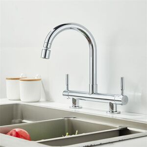 TIPS: Before purchase, please measure the 2 hole distance and countertop thickness.(1)Only Suit for kitchen sinks with double holes, and the distance between the centers of the double holes is 180 mm. (2)Our screws are used on the countertop with a max 40 mm thickness, for the hole of a 20 mm diameter Belfry Kitchen Finish: Matte Black
