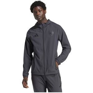 You can rep the Gunners in any weather when you pull on this Arsenal Tiro 25 Competition jacket from adidas.The top the players pull on when preparing for league matches, it teams a packable hood and a water-repellent build so you can concentrate on your game even in light rain.All the while, a team crest proudly displays your football allegiance.FEATURES:-Regular fit.-Full zip with bungee-adjustable hood.-100% polyester (recycled).-Front pockets.-Water-repellent material.-Hood packs into collar.-Arsenal screenprinted crest.