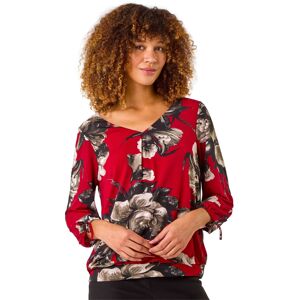 Floral Print V-Neck Chiffon Hem T-Shirt from Roman. Freshen up your Spring wardrobe with this feminine floral number. Featuring a seasonal floral print, the contrasting chiffon hem adds a touch of elegance to this piece, enhanced by the comfortable stretch jersey body. The relaxed fit, v-neckline and short cap sleeves make it a versatile addition to your everyday rotation. Perfect for pairing with cropped trousers and sandals on sunny days, this tee radiates effortless style and laid-back sophistication. Roman Women's Floral Print V-Neck Chiffon Hem T-Shirt in Blue Size: 12