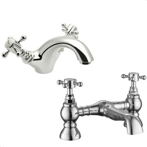 Traditional Crosshead Basin Pillar Taps and Bath Shower Mixer with Kit - Chrome Add instant style to your bath with a striking balance between utility and statement design. Built to harmonize with minimalist and eclectic styles alike. Made with premium components and finished to a high standard. The single lever offers smooth control over water flow and temperature. Product Highlights: STYLE: A timeless design with classic crosshead handles and elegant curves, perfect for adding traditional charm to both modern and period-inspired bathrooms. FINISH: In a crisp chrome finish that brings a touch of elegance to your bathroom, complementing a wide range of interior styles—from minimalist modern to timeless classic. EASE OF USE: Traditional-style crosshead handles allow for intuitive temperature and flow control, designed to complement everyday use with classic charm. QUALITY MATERIALS: Made from premium materials with a high-quality finish, designed to deliver durable, reliable