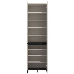 Keep your space stylish and clutter-free with this tall mirrored shoe cabinet in an elegant cashmere taupe finish. Designed for modern living, this sleek unit maximises storage while elevating your décor. The mirrored doors not only create the illusion of a brighter, more open space, but also serve as a practical addition to any hallway, bedroom, or dressing area. With four doors and eight internal shelves, this space-saving cabinet can store up to 40 pairs of shoes depending on their size and style. Its slim profile makes it ideal for narrower spaces, providing vertical storage without compromising floor area. A practical and attractive storage solution for homes seeking both form and function. Ebern Designs