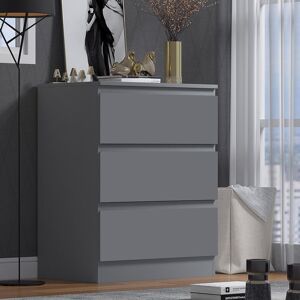 The Stora 3 Drawer Chest of Drawers is the perfect addition to any contemporary home, offering stylish storage and organization. This piece features a matt finsih frame contrasted by stunning gloss drawer fronts that beautifully reflect light, enhancing the ambience of your space. The three spacious 14cm deep drawers provide ample room for clothing, linens, and accessories, making it as functional as it is fashionable. The Stora Collection is designed to keep your bedroom organized and clutter-free while adding a contemporary touch to your space. Its sleek handleless design brings a minimalist and modern aesthetic, suitable for a wide range of interior styles. The Stora Collection offers a variety of finishes, including Black Gloss, Dark Grey Gloss, White Gloss, Matt Black, Matt Dark Grey, and Matt White, ensuring you can find the perfect match for your bedroom decor. Hashtag Home Colour: Grey Gloss