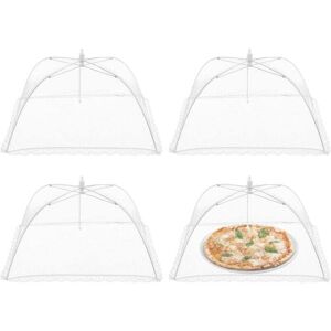 [Large Size Food Cover Tent]: 4 pack pop up mesh food covers, 17 x 17 inches, large enough to cover an entire plate of food. [Sturdy and Foldable] The frame of the food umbrella tent is made of high quality galvanized steel, so it can provide strong support and it is very easy to open and fold for convenient storage. [White Fine Mesh Polyester Food Cover] This net protects your food while keeping it ventilated and visible, ensuring food safety, perfect for all indoor and outdoor dinners such as backyard BBQs, picnics, camping trips, pool parties, drying excess vegetables, ETC. [Washable Pop Up Mesh Food Cover]: Easy to clean, can be washed by hand, when food is stuck to it, just wipe it with a damp cloth. rinse with a little cold water, soak in warm soapy water, open and dry.