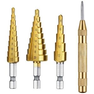 100% New and High Quality. Made from high quality material Perfect for using to cut holes in a variety of materials including steel, brass, wood, plastic, etc. Heat treated and highly polished. Drills perfectly round holes in steel, brass, plastic, wood etc. 3 sided shanks order to prevent slippage when in chuck. Two flute design drives faster, smoother and cleaner cuts each step is clearly labeled with the depth diameter in steps Function: Deburring, Chamfering, Cutting or expanding holes Supporting tools: drill, Hand drill, Charging drill, Bench drill. (Water injection cooling while working, it can effectively extend the service life of the drill bit, especially in the case of continuous drilling) colour:Golden Material:High speed steel size:9 x 13 x 2.5cm Package Contents: 3 x Step Drill Bit 1 x Center Puncher Only the above package content, other products are not included. Note: Light and different displays may cause the color of the item in the picture a little different from the