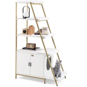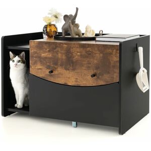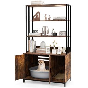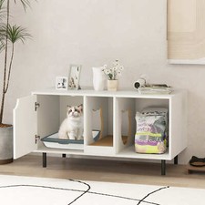 Provide a Comfortable Toileting Experience for Your Lovely Kitten!Our cat litter box enclosure measures 120 x 52 x 65cm (L x W x H) and each compartment measures 42 x 51 x 51cm (L x W x H), which can accommodate most cat litter boxes (Notice: Please measure the size of your cat litter box before purchase). With the wide tabletop, the cat furniture can also be used as a TV stand that can hold TV screens up to 50”. With 2 individual compartments, this hidden cat washroom is great for safeguarding your cats’ privacy, allowing them to unleash their natural instincts. Cats can also enjoy scratching fun with the medium scratching board, effectively preventing them from scratching everywhere. In addition, it is equipped with 4 metal legs guaranteeing great stability and durability, and the metal legs can be detached for stacked storage. With its elegant and vintage appearance, the cat litter box furniture can be a perfect decoration and brighten your room. Features:Can be used as a cat