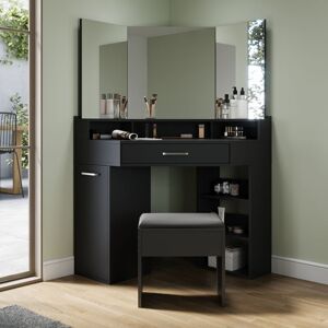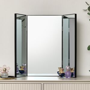 This Large Black Dressing Table Triple Mirror is a simple yet stylish table top mirror perfect for placing on a dressing table chest of drawers or bathroom vanity unit. Made of wood and glass this mirror has a rectangular shape with a triple mirror design and a black frame. Perfect for placement in a bedroom bathroom or dressing room space. A great gift choice for make up lovers or fans of vintage style and luxurious mirrored finishes. A pretty mirror choice for fans of mirrored decor and art deco style. Part of a large collection of table top mirrors available in a selection of styles sizes and designs. Want to see more items like this? Browse our mirrors category for more options. Colour: Black Material(s): Wood Glass 70cm x 60cm x 2cm (width x height x depth) Fully assembled