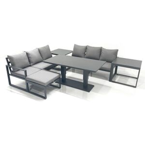 This deluxe aluminium outdoor sofa set is a great addition to your patio or garden, made of high quality Alloy aluminium and powder coating for sturdiness and structural durability. Set Dimensions: • 2 x 3 Seater Sofa: 166W x 73D x 78H cm • 2 x Side coffee table :68L x 68W x 59H cm • 1 x Big footstool:60L x 60W x 35H cm • 1 x Adjustable dining table:140L x 80W x 48/70H cm(Low 48cm Height 70 cm With Black Tempered Glass) Dark grey powder coated with dark grey fabric .Color may vary little due to light or monitor .we are unable to return the item due to color problem .please contact us before purchase if you have requirement on color saturation. Table can stop at any height between 48-70 cm .Cheap Price Compared With Other On or Offline Store For Rising Table Set Items Comes Flat Pack And Easy Assemble, Alloy aluminum Frame With Powder Coating To Prevent The Rust This Set Was Completely Made By Handmade, Black tempered glass With Sucker On Surface To Prevent Slide,9 CM Thick Seat