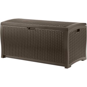 The Deck Box is a convenient outdoor storage solution for different types of tools, equipment, and patio accessories. This storage chest is crafted out of high-quality resin which helps in making it strong and long-lasting. The wicker finish of this storage chest blends into all types of gardens perfectly. Complete access to things stored within is made possible by a lid that opens wide. The Deck Box has a contemporary design that makes it aesthetically appealing. Dakota Fields