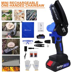 Mini Chainsaw 21V Small Electric Chain Saw 4 Wood Cutter Handheld Chain Saws for Cutting Wood Trees Gardening Pruning Features: ��Upgraded Mini 4-Inch Chainsaw��Our mini 4-Inch chainsaw added a safety lock switch and splash guard on it. It requires the user to press the lock button and switch button simultaneously to start the chainsaw, which effectively avoids misoperations and potential risks. An Anti-splash baffle prevents wood chips from splashing during work. In addition, LED light has been added. You can work safely in the dark. ��Pure Copper Motor Fast Cutting��Our cordless chainsaw is equipped with a 550W high-speed pure copper brushless motor, provides cutting speed beyond imagination. After high-temperature quenching, the chain is characterized by sharpness, wear-resistance, and durability, which makes it very labor-saving and easy to cut woods. ��One-Handed Operation & Easy Use��Our electric chain saw has a non-slip handle, is ergonomically designed, and is easy to operate.