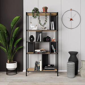 Transform your living space or office with our versatile flat-pack bookcase, available in 2 sizes: Midi (88 cm wide) and Mini (58 cm wide). This stylish and functional furniture piece serves as both a bookcase and an elegant room divider. Crafted from high-quality 18mm engineered wood and sturdy metal frames, it ensures durability and stability. With 5-tier shelves and an Oak-Silky Grey Black finish, it offers ample storage and blends seamlessly with any decor. Easy assembly and nature-friendly materials make it a smart, eco-conscious choice. Borough Wharf