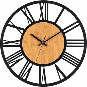 Material: The dial of this wall clock is mainly made of high quality metal and eco-friendly wood. Silent Movement: Very quiet quartz sweep movement without ticking noise and precise, guarantees accurate time and provides you with a good sleeping and working environment. Easy to See: Clear Roman numerals are very easy to see. This wall clock is a beautiful decoration for home. You can place this wall clock in the living room, bedroom, kitchen, office, etc. Easy to Install: The stronger hook design is less damaging to the wall. It can be easily installed on the wall with a small nail (included in the package). ;Battery Operated Wall Clock: Use 1 AA carbon zinc battery (not included). For longer use, do not use alkaline batteries or high-power batteries, which will affect the accuracy of the time. (Note: The plus side of your battery should be inserted first).