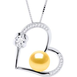 Necklace - Freshwater Pearl 8-9mm button - Heart Pattern & Oxides - Box Chain Rhodium 925 Thousandth - Length: 42 cm - Delivered in a case with a certificate of authenticity and an international Warranty - All our jewelry are manufactured in France.