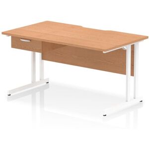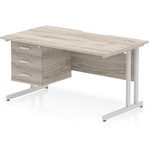 Impulse Bundles Impulse 1400 x 800mm Scalloped Edge Straight Office Desk Grey Oak Top Silver Cantilever Leg Workstation 1 x 2 Drawer Fixed Pedestal