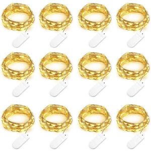 Each string light is powered by two CR2032 batteries which is replaceable. Besides 16 batteries which are assembled in the device, there are also 6 extra spare batteries delivered in the package! Made of copper wire, the string lights are very light, original and delicate. The battery box is very small to be easily hidden. Low consumption, this string light can light up for 48 hours and create you the romantic atmosphere. LED light, characterized by less ultraviolet and infrared light, reduces the harmful effects of radiation to the body. Suitable for weddings, birthdays, New Year's Eve parties, Easter, barbecues, receptions, business events, outdoor decorations. Specifications Light Color: Warm White Power: 1.8W Power Supply: 16 x CR2032 batteries (included) Voltage: 3V Total Length: 8 x 3M Waterproof: IP65. (But the battery box is not waterproof) String Quantity: Pack of 8 Package Included 8 x Warm White LED String Lights 16 x CR2032 Batteries (which have been installed in the