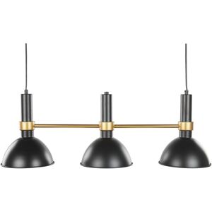 Retro Ceiling Light with Gold Accent. Light up your kitchen or dining area with this exceptional track lighting inspired by retro design. The metal construction in classic black works great with many interior styles, and the gold accents add a glamorous feel. Hang it over a table and enjoy meals in a nicely lighted space. Details: Product Type: Pendant Light Style: Retro General Color: Black, Gold Material Type: Metal Main Material: Iron Shade Material: Metal Wattage: 40 W Finish: Painted IP Protection Code: IP 20 Light Bulbs Required: 3 Voltage rating: 230 V (50 Hz) Dimensions: Cord Length: 77 cm Depth: 20 cm Width: 82 cm Height: 107 cm Weight: 3 kg Offer Includes: 1 x Ceiling Lamp Key Features: Calming Diffused Light, Works Splendidly as an Ambient Light, Well-Suited for Variety of Home Decor, High-Quality Materials, Exceptionally Low-Maintenance Assembly Information: Requires Installation. 5-15 min. Additional Information: The lamp is meant for light bulbs of efficiency category
