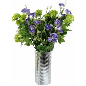 These artificial flower arrangements come with the vases � a complete pack of everything you need to create the display shown in our photos. When arranged as we have it shown in our photos this measures 60cm x 40cm x 40cm. Stems are wired and this can be shaped to your requirements. This pack contains the following: 1 x LEAF-40579 30cm silver dot glass vase 30cm tall x 15cm x 15cm at widest points. 3 x LEAF-40648 70cm artificial viburnum spray. 2 x LEAF-40654 85cm artificial green foliage spray. 6 x LEAF-40666 80cm artificial purple wild rose stem with six flowers. Flowers and foliage are supplied loose at full length ready for you arrange. You can cut these shorter if wanted for arrangement (very easy- just use wire cutters) or you can just fold the stems at the ends before putting them in the vase