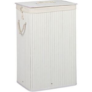 Get the perfect laundry basket for your bedroom, bathroom or cellar at home. Bamboo makes the laundry bin the optimal furniture for damp rooms and creates a decorative look. The angular laundry box offers plenty of space for your dirty clothes. This can be easily concealed with the lid and conveniently transported with the handles. When needed, the flexible laundry box can simply be folded and stored away. Bamboo Laundry Basket in Detail - Overall dimensions HxWxD: 65.5 x 43.5 x 33.5 cm - Inner dimensions HxWxD: 63.5 x 41 x 32 cm - Capacity: approx. 83 L - Weight: approx. 2 kg - Material: Bamboo, cotton, MDF - Colour: White - In a set of 2 Foldable Laundry Basket with Lid - Dirty laundry hidden thanks to lid - Decorative design for bathroom or bedroom - Fold when needed and store in a space-saving way - No odours thanks to ventilation holes in the base - Take out the laundry bag and wash at 30 degrees - Easy to transport thanks to carrying handles Included in Delivery - 2x bamboo