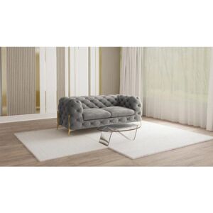 The Chesterfield sofa with golden metal leegs is an elegant addition to your living room. Crafted from high-quality velvet fabric, this sofa offers not only a touch of luxury but also high comfort. The seat cushions are filled with premium foam padding and springs, providing a plush and supportive sitting experience. The classic Chesterfield design with button detailing on the front and back gives this sofa a timeless elegance. The golden metal leegs in a shiny gold finish not only offer stability but also add a touch of glamour. These leegs elegantly elevate the sofa from the floor, giving it a floating appearance in the room. The high-quality velvet fabric is not only pleasant to touch but also durable and resistant to stains and damage. This sofa accommodates two people comfortably and is perfect for cozy evenings or conversations in smaller gatherings. A focal point in any living room. Etta Avenue Upholstery Colour: Navy Blue, Size: 73cm H x 185cm W x 100cm D, Seating Capacity: 2