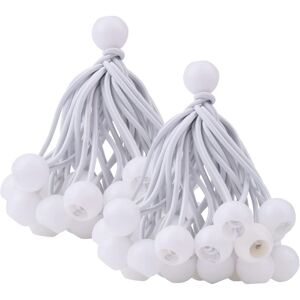 About this item [DURABLE]: Bungee ball cord with ball, rubber elastic rope, 5.9 inch length, ball diameter 0.86 inch, durable, weather resistant. [SIZE]: Bungee ball rope length 15 cm / 5.9 inch, ball diameter 2.2 cm / 0.86 inch. [MATERIALS]: Tarp cord with new thicker material has a diameter of 4 mm, providing better resistance in all conditions. [LOADING CAPACITY]: As a relatively small elastic ball, it can not bear heavy loads. [WIDELY USED]: Ball cords are suitable for awning, tarp, parasol, sleeping bag, fixed household items, tent, awning, wall pipe, fishing rod, screen, awning, etc.