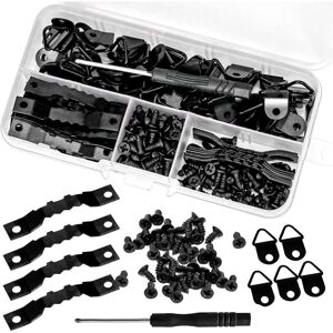[100 Pieces Picture Frame Hooks] The set comes with 100 pieces small picture frame hooks, including 50 pieces zigzag picture frame hooks and 50 pieces triangle picture frame hooks. They are fun to use with your picture frame to decorate your home walls. [Hidden Design] The small picture frame hook can be perfectly hidden on the back of the picture frame, it will not destroy the beauty of the home wall and make your home environment more beautiful. [Sturdy Metal Material] The small picture frame hook is made of iron, the outer layer is painted, not easy to deform, not easy to rust, wear-resistant, and can serve you for a long time. You can hang it in different places to decorate your home. [With Mounted Screws and Screwdrivers] We also prepare screws and screwdrivers matching the frame hooks for you, so that you can easily screw the hooks into the picture frame. The screw-in hooks fit the picture frame better and will not fall off or damage your frame during use! [Picture Frame Hook]